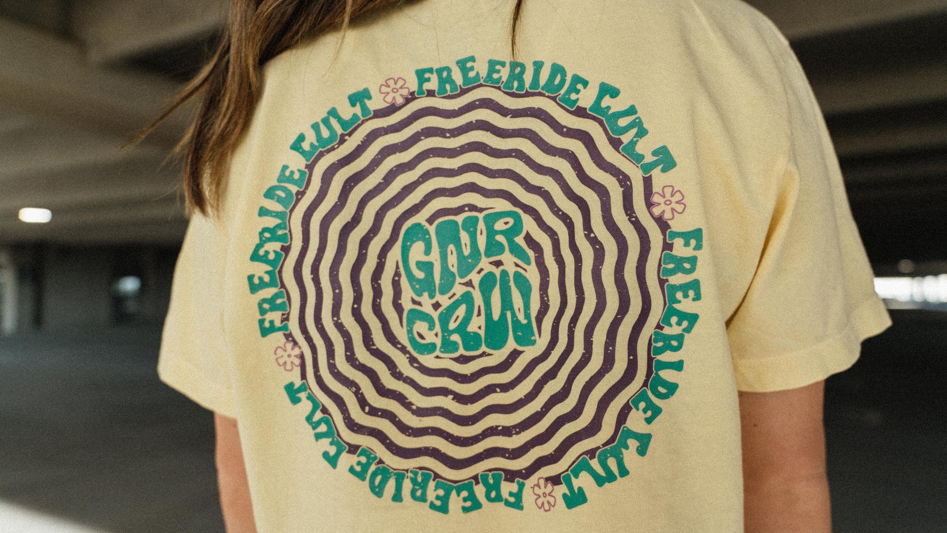 Cropped fit, trippy back graphic, and Freeride Cult energy on tap. Pair it with your favorite psychedelic or just your bike, same effect.